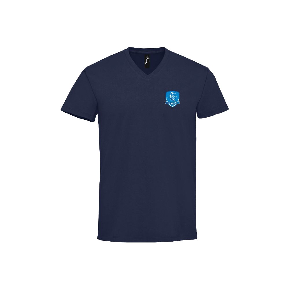 Tee-shirt manche courte col V HOMME marine sérigraphié à l'effigie du FC MUZOLAIS