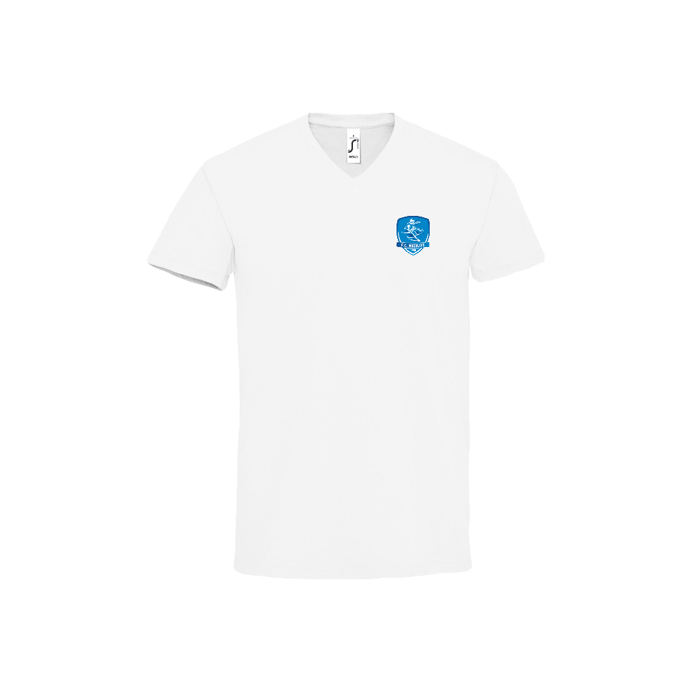 Tee-shirt manche courte col V HOMME blanc sérigraphié à l'effigie du FC MUZOLAIS