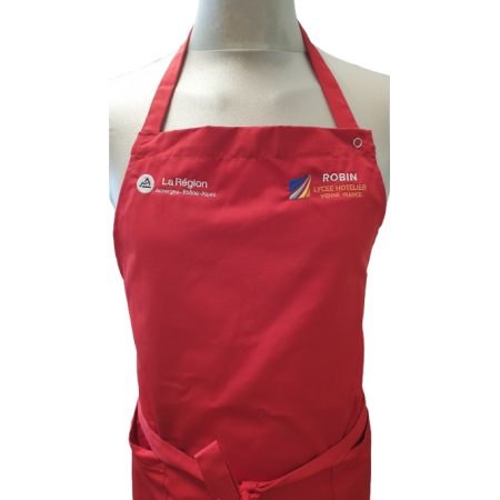 Tablier à bavette mixte rouge GALANGA, brodé Institut Robin et La Région